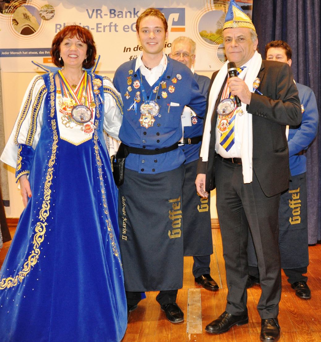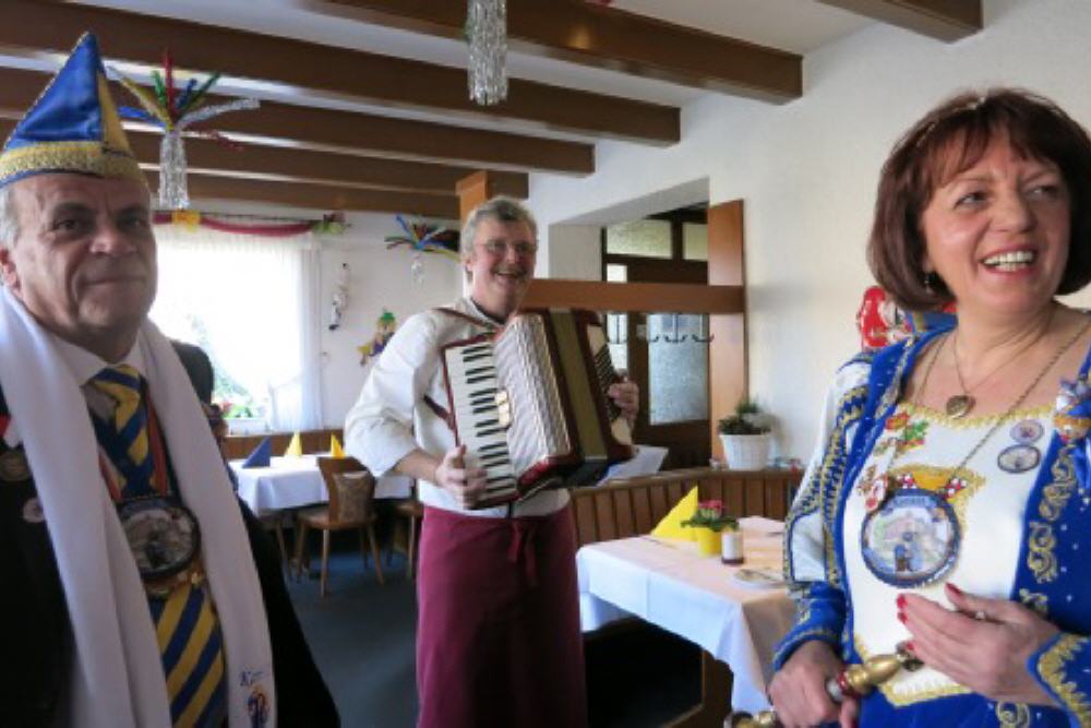 An diesem Morgen gratulierten wir zuerst einem Geburtstagskind in meiner Hofburg und gingen dann zum musikalischen Frühschoppen der Interessengemeinschaft Roisdorfer Karneval. Hier erwartete uns wieder ein buntes Treiben. Befreundete Tollitäten gingen ein und aus und machten auch mir ihre Aufwartung. Günter Schäfer