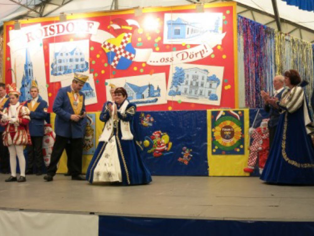 ich und mein Gefolge möchten uns janz hetzlich für die schöne Zeitmit Euch bedanken. Insbesondere an meinem großen Tag, dem Weiberfastnachtszug. Viele Jecke standen am Straßenrand und hatten eine schöne Stimmung. Auch einen herzlichen Dank möchte ich an alle Zugteilnehmer aussprechen. Mit viel Mühe und Arbeit wurden im Vorfeld wunderschöne Kostüme geschneidert und tolle Wagen gebaut. Durch die Straßen von Roisdorf zu fahren, war für mich ein einzigartiges Erlebnis, das ich nie vergessen werde. Auch möchte ich allen Organisatoren - insbesondere Wolfgang Mertgen - herzlich Danke sagen für den reibungslosen Ablauf.