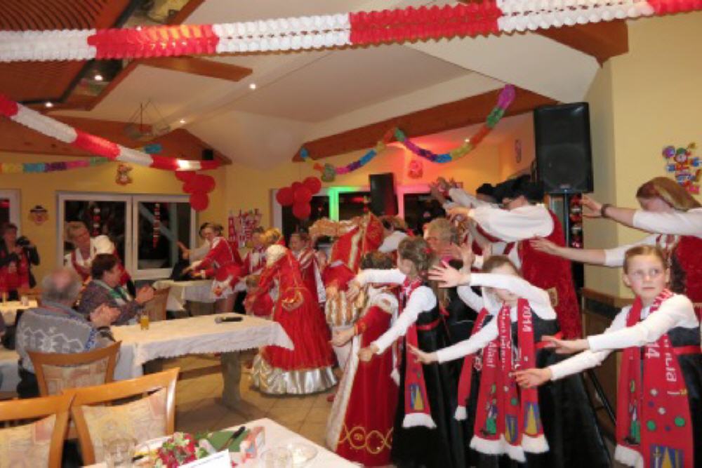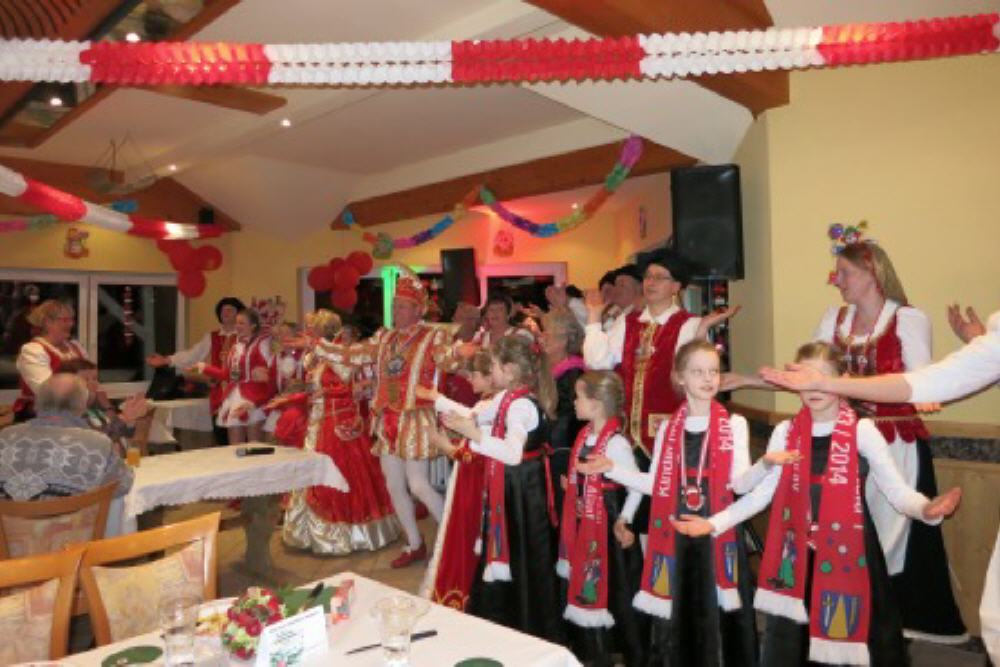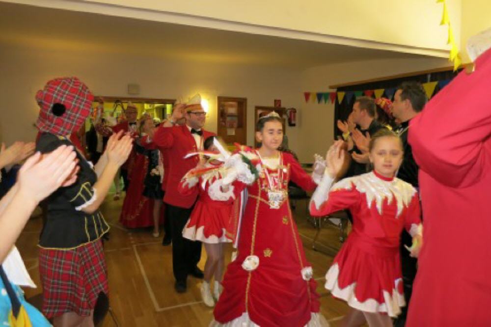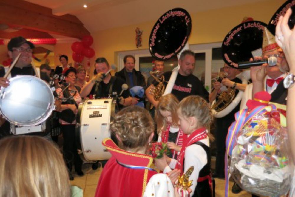 Hier war es ein nach Hause kommen. Kinderprinzessin Laura I aus Waldorf, Kinderprinzessin Patricia I aus Sechtem und Prinz Bert I und Prinzessin Silvia I aus Merten waren bereits in froher Laune mit ihren Gefolgen. Mit mir und meinem Gefolge war die Familie komplett und wir danken der Familie Bräutigam ganz herzlich für die schönen Stunden, die wir bei ihnen erleben durften. Wir sind sehr freundlich aufgenommen worden und gut beschenkt worden. Hier wird Karneval met Hätz jefiert.